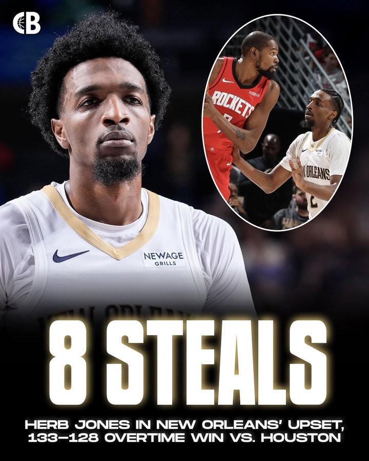 據(jù)統(tǒng)計(jì),8次搶斷是瓊斯職業(yè)生涯的單場搶斷數(shù)新高,他也憑借著強(qiáng)悍的防守表現(xiàn)幫助鵜鶘完成超級逆轉(zhuǎn)。